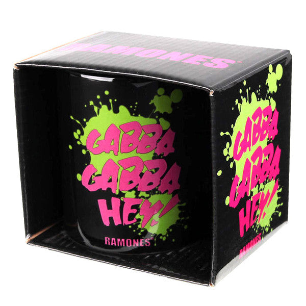 Ramones Gabba Gabba Hey Mug Ramones 11oz (approx 320 mls) Black ceramic and featuring the 'Ramones Gabba Gabba Hey' design motif. Comes gift packaged() ( No reviews)